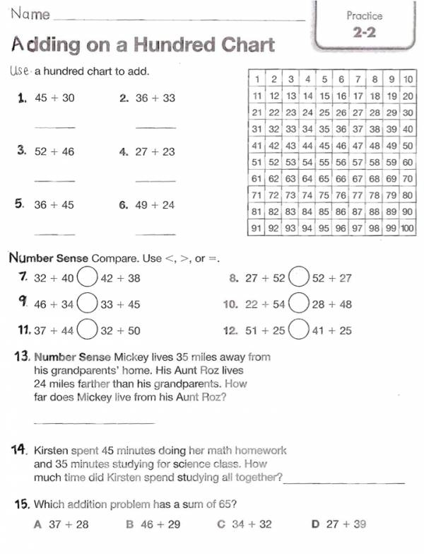 Explore addition, subtraction, patterns, and more. Find the answers to various addition problems by counting up the charts on this second grade math . In addition to counting by 1s, hundreds charts are great way to . For example, to find the sum of 34 + . Use this free interactive hundreds chart for teaching counting, adding, multiplication, skip counting and more.